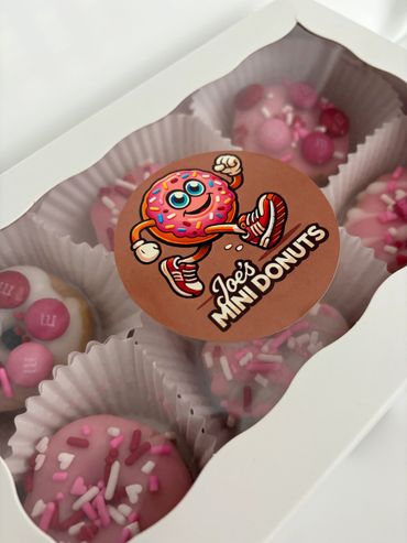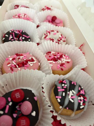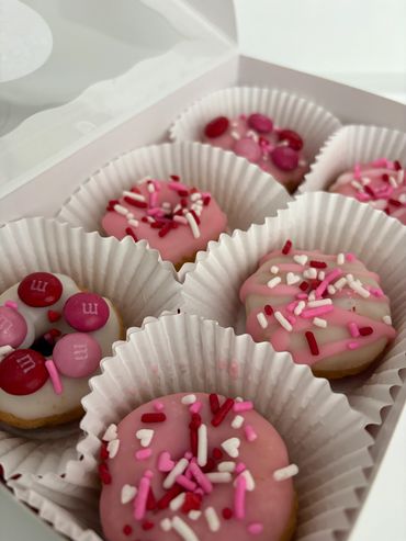 Treat your Valentine (or yourself!) to a box of fresh, festive mini donuts—perfect for kids, coworkers, teachers, friends, or date night.